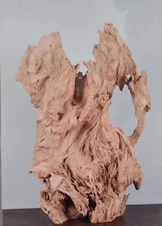 每次颱風過後,就要開始收拾殘局,關於廢棄殘枝木材的部分政府林務主管機關會視狀況公告開放時間給民眾自由撿拾利用,達到廢才發揮朽木的邊際效用。亂撿的話會處法,可能是老天爺的安排吧!讓我退休以後有事情可做,不能英英美代子、無所事事。政府公告一出,呂老師靈機一動,就去海邊跟著大家撿拾木頭。他沒有經驗根本不知如何撿起,東問西問、多聞多學,當時運氣蠻好的認識了「章讚成」好木友,就這樣我就開始玩賞起奇木,愛木成癡和奇木結下了不解之緣,有趣的是我和章前輩失聯多年、某1天在海邊又巧遇了…。玩賞、收藏奇木雅石到參加展覽,已成為生活中重要的一部分。