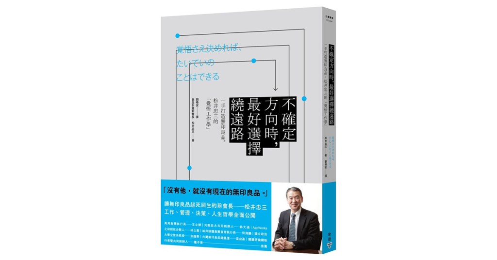 ▲松井忠三所寫的《不確定方向時,最好選擇繞遠路》書籍,他靠著「覺悟工作學」,一手打造無印良品(圖係取自金石堂)。