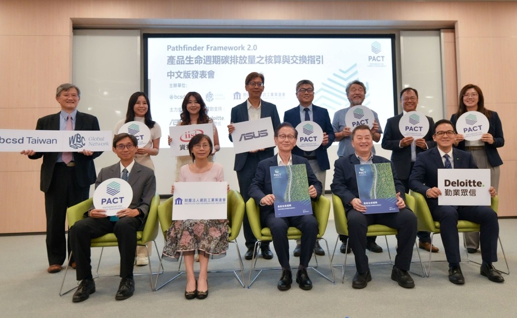 ▲資策會與企業永續發展協會(BCSD Taiwan)共同發表Pathfinder Framework 2.0的《產品生命週期碳排放量之核算與交換指引》正體中文版,圖為與會貴賓共同合影(照片係資訊工業策進會提供)。