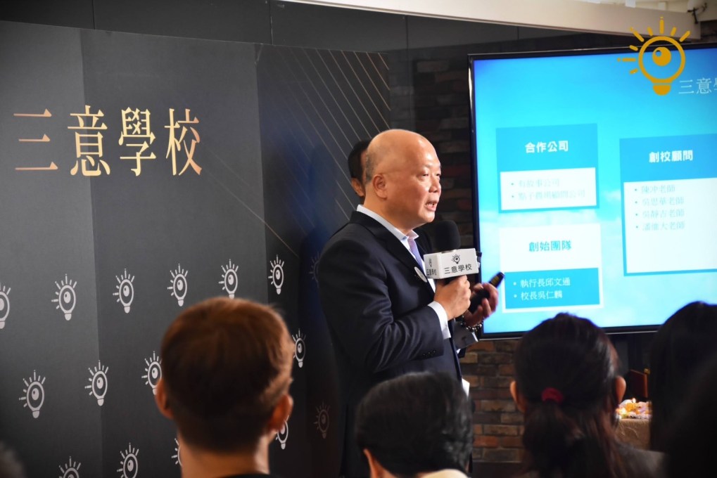 ▲三意學校吳仁麟校長,長期以媒體、論壇、社群來推廣創意、公益、生意的三意理念(照片係三意學校提供)。