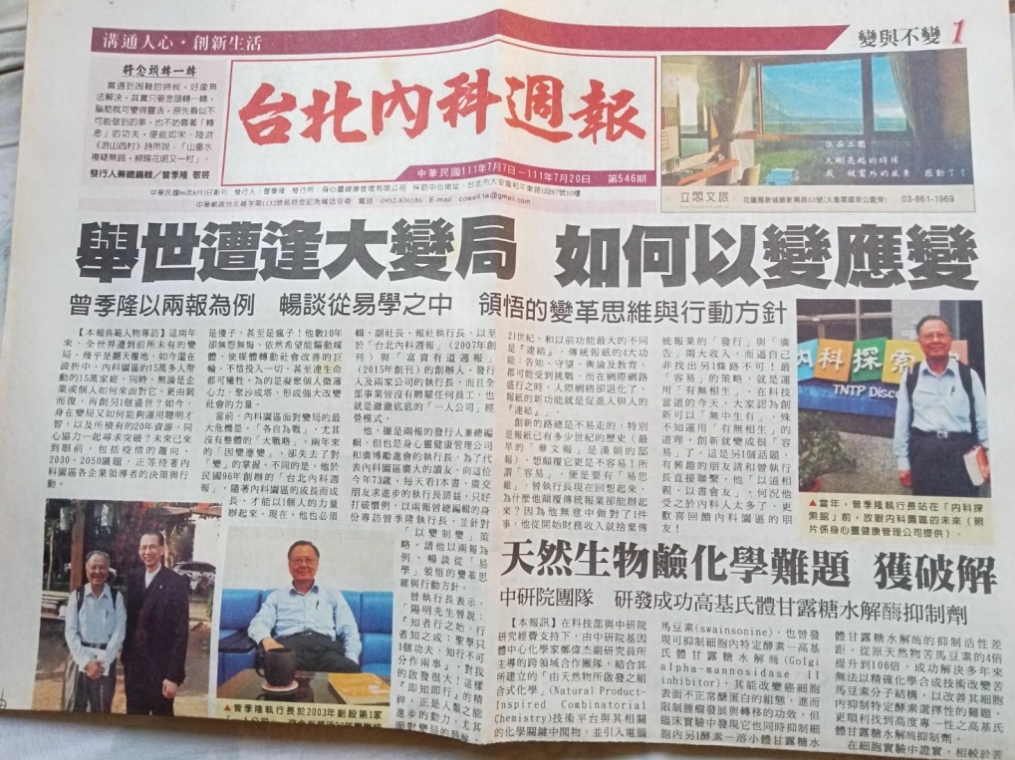 花了60年磨一劍的他(從15歲發願辦報,到今年已是75歲了),是「無紙報-台北內科週報」(2007年創刊)與「有紙報-富貴有道週報」的創辦人(2015年創刊),除了視辦報為天命之外,他擁有比一般人還豐富的經歷,49年來養成每天看1本書的習慣,更因此而「以書為友」、「以書會友」及「以友為書」,書與友對他來說,是一體相成的,最後,他成為1個既愛看書、又愛交友的人。