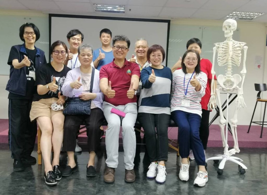 ▲拓齡公司陳英聰總經理(第1排右3)是很優秀的物理治療師,以小班制傳授24招「拓齡潤節運動」;圖為他和的學員合影(照片係拓齡公司提供)。
