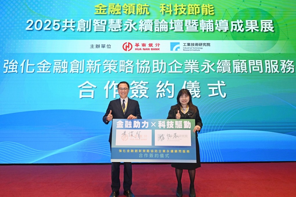 這次合作,係由工研院副總經理、林佳蓉行銷長與華南銀行黃俊智總經理代表簽署,象徵雙方跨界整合科技與金融資源,共同啟動企業減碳行動、邁向淨零未來;合作內容涵蓋培育永續人才、永續金融論壇、企業減碳輔導與工作坊等多元形式,實質協助企業落實減碳目標,同時導入資金與創新應用,媒合綠能解方,提升企業節能實力,加速朝向低碳永續經營。
