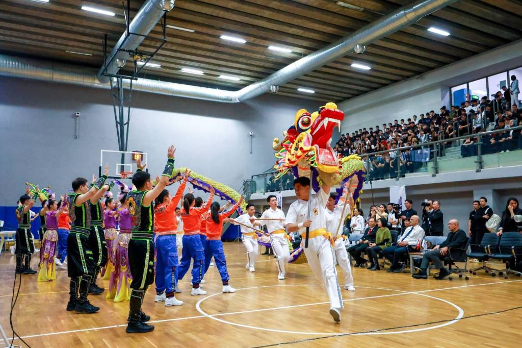 ▲東方神龍與鳳凰蒞臨校園,師生驚艷不已,並以神龍與鳳凰翱翔人間的震撼演出,揭開活動的序幕(照片係太極門氣功養生學會提供)。