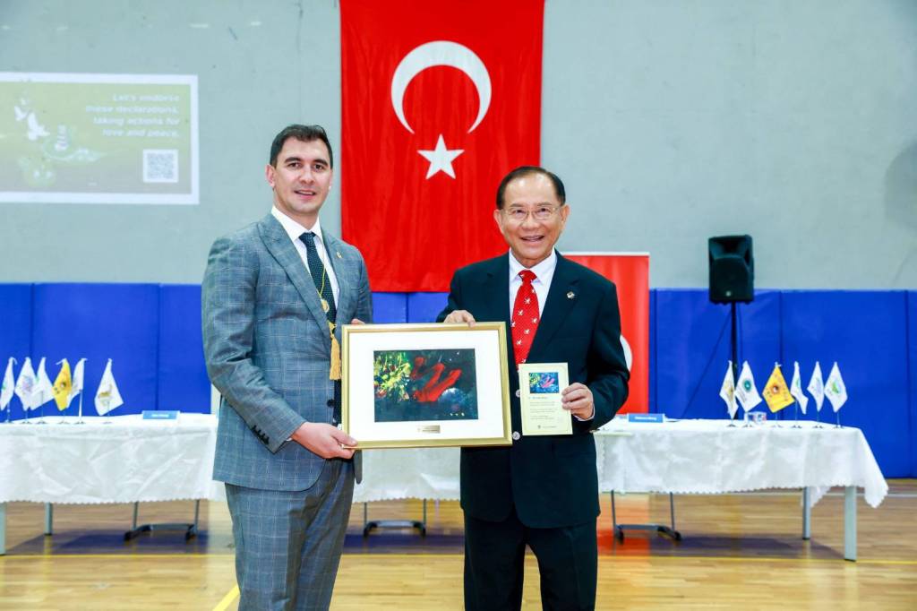 在發表完深具啟發性的談話後,洪博士特別頒贈學校Oğuzhan Ceylan總經理文化交流感謝狀等禮品,以及1幅獨特藝術畫作,象徵「心若清明,即使置身暗黑靜寂的星空,也能憑著明月之光,照見前行之路」,內容寓意深遠。