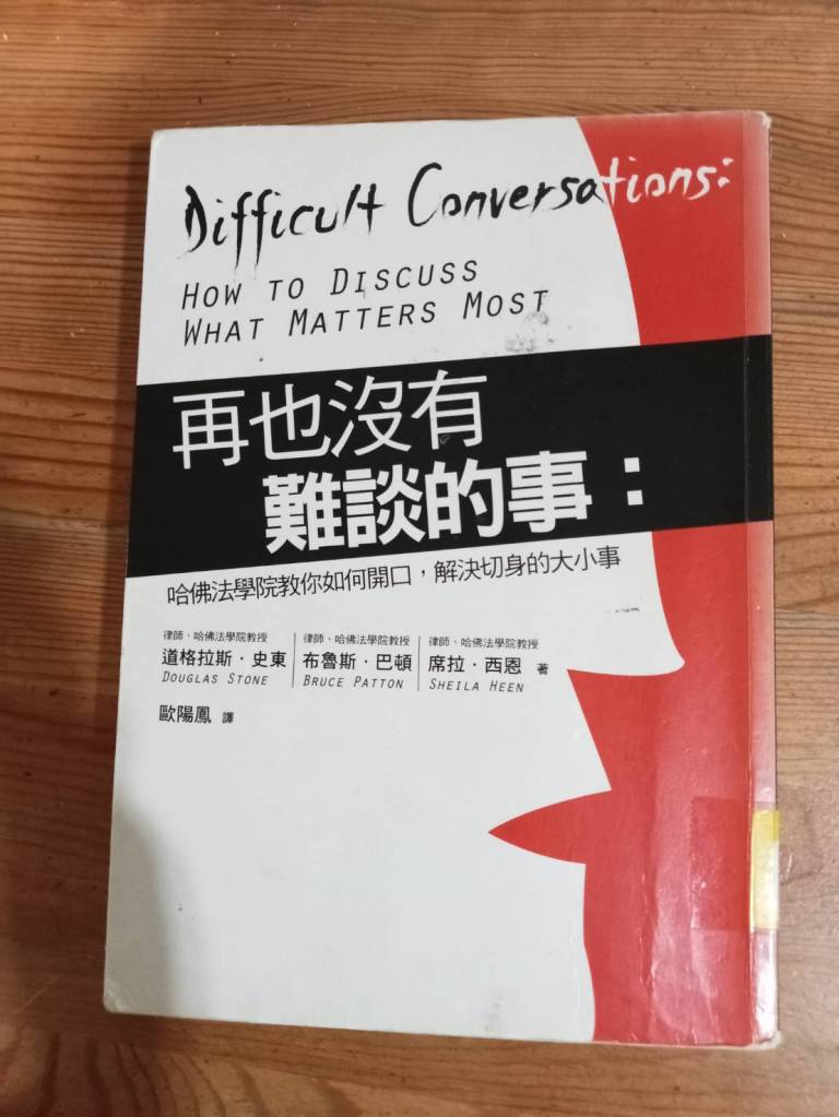 【以書會友】生活中,少不了和人來往,而只要有人的地方,就需要大家商量著辦事情。一涉及意見不同,如何才能獲得共識,便需要溝通了。最近看完哈佛法學院的道格拉斯.史東Douglas Stone、布魯斯.巴頓Bruce Patton、席拉.西恩Sheila Heen3位教授寫的《再也沒有難談的事:哈佛法學院教你如何開口,解決切身的大小事》1書,覺得懂溝通的方法,就能讓事情順利進行。