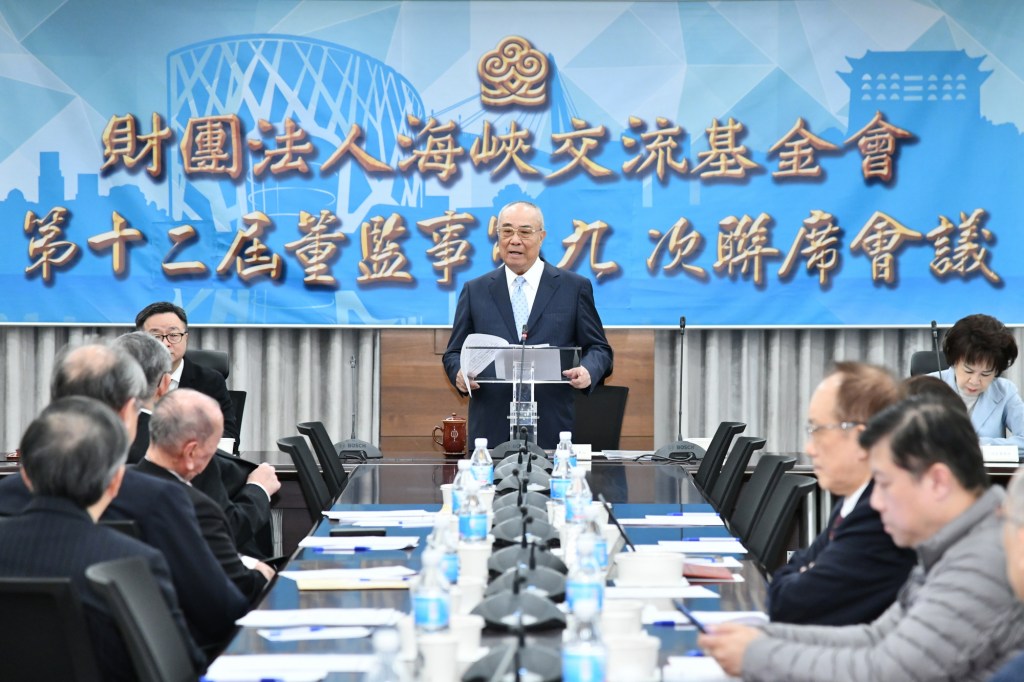 ▲海基會舉行第12屆董監事第9次聯席會議中,吳豐山董事長表示,他將欣然讓賢而於12月31日卸任(照片係海峽交流基金會提供)。