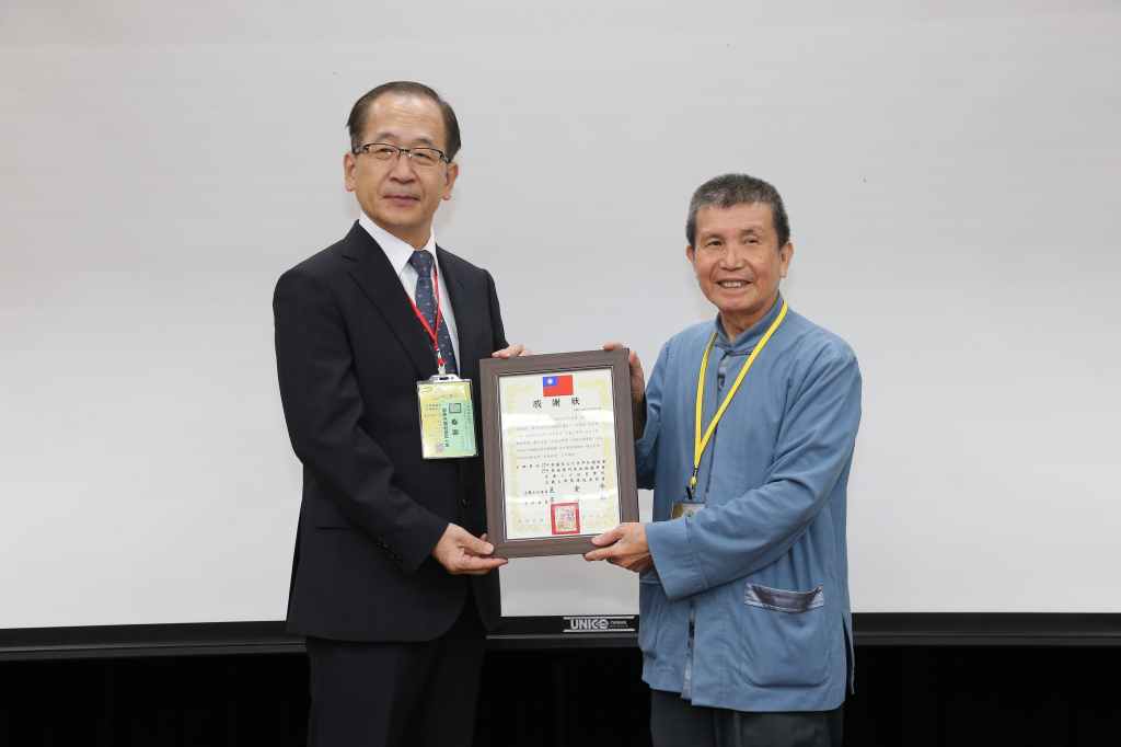 ▲矯正署林憲銘副署長(左)頒發感謝狀給忠義文學獎主辦單位,由黃國彰理事長代表接受(照片係中華關聖文化世界弘揚協會提供)。