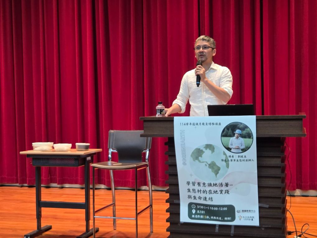 【銀青共享特稿】從建築師回歸於土地重新起步,花蓮陽光三葉草生態村劉建生創辦人,走的是1條不預設的生命路徑,他於3月30日,應邀在臺北大學通識教育中心與社會科學院USR協同舉辦的「通識月第3場飛鳶博雅講座」,分享「學習有意識地活著-生態村的在地實踐與生命連結」,獲得與會師生及參加民眾深深的肯定。