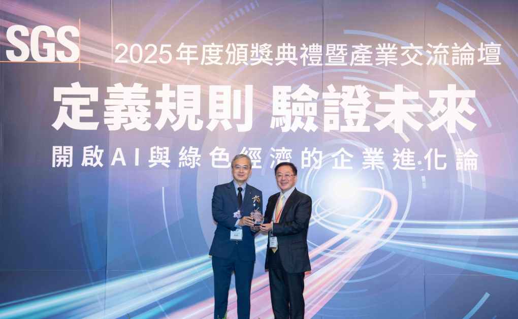▲台達取得ISO 59004循環經濟認證,並於SGS 2025年度頒獎典禮榮獲「年度創新獎」,圖係台達副總裁、周志宏永續長 (右)代表領獎情景(照片係台達電子公司提供)。