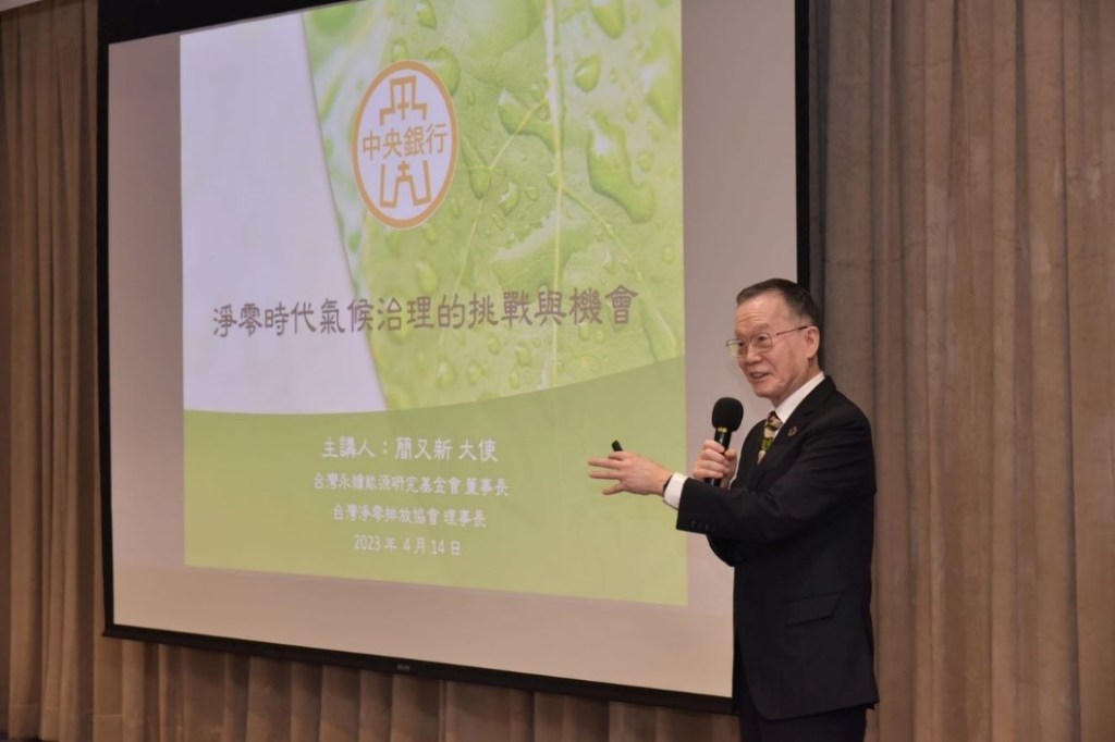 ▲TAISE董事長、簡又新大使於中央銀行演講情景(照片係台灣永續能源研究基金會提供)。