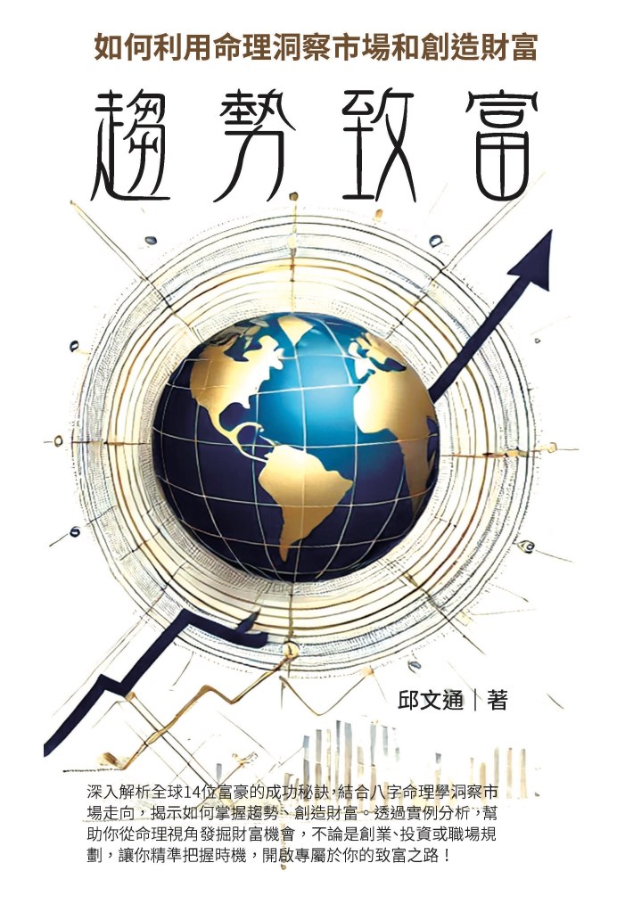 所謂人生在世,既要讀萬卷書,也要行萬里路。而我之幸運,就是以書為友、以友為書,尤其以邱文通為友,於我更是勝讀萬卷書。知我的人都知道,我一生辦報不是為的要捧人。對文通老師,我許他為知己。不敢說他知天文地理,但是他為人實在、做事認真!做人要做到和他一樣,已經可以列為菁英了。何況,他對八字命理,具有獨到見解,在工作之餘,不斷的鑽研和印證,多年來更養成超乎一般江湖術士的本事,他說:「就八字命理的應用,趨勢的問題可從兩個角度切入,1是從八字命理宏觀全球趨勢;1是從八字命理微觀個人趨勢。從宏觀的部分來說,有以下的論點:『水多主動亂、火多主戰爭、金多主變革、木多主生長、土多則主穩定與防禦』,但這是來自命理師的經驗和總結,並沒有特定的現代科學研究或作支持。」