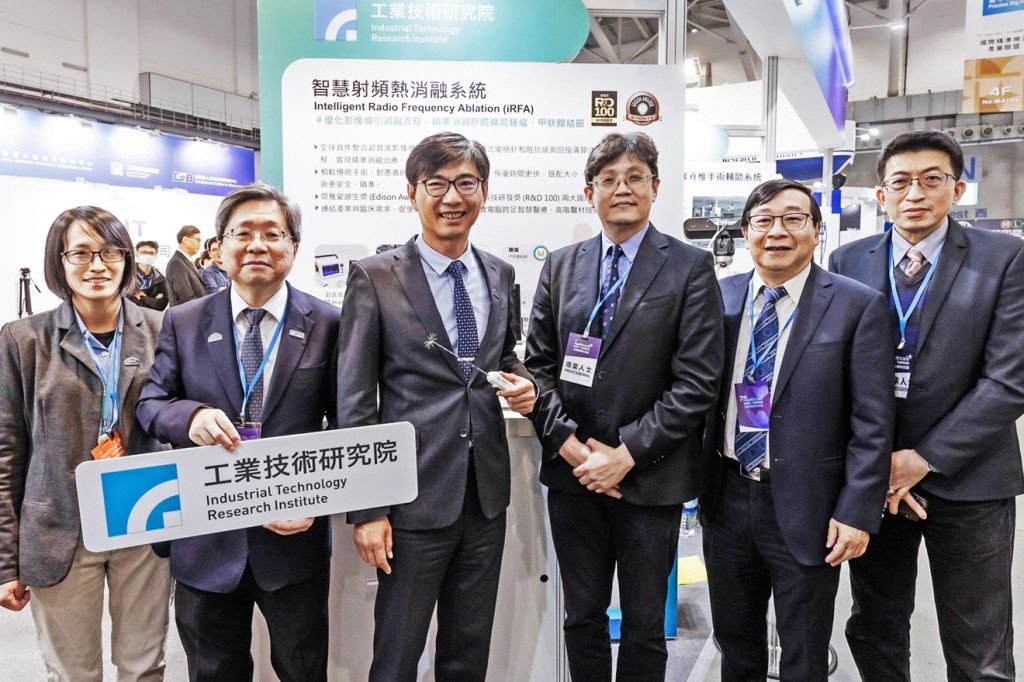 ▲工研院開發出「智慧射頻熱消融系統(iRFA)」,已經技轉給仁寶電腦,完成國內多例臨床手術,今年更接連拿下愛迪生獎銅牌與全球百大科技研發獎國際肯定;圖係攝於「2023醫療科技展」科專成果主題館前(照片係工業技術研究院提供)。