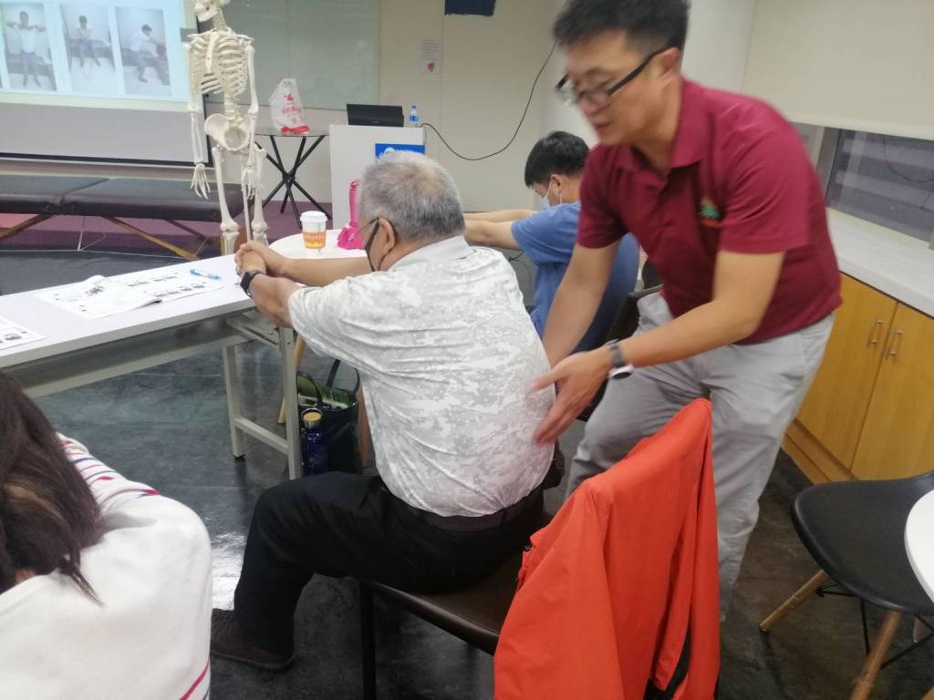 陳英聰說:「我採取小班制,第1期學員很順利在1天就能即學即用初階課程,他們包括運動教練、自主教練、居服員、中醫筋絡講師,還有也有兩位本身有疼痛問題、想透過運動自癒者來參加」。