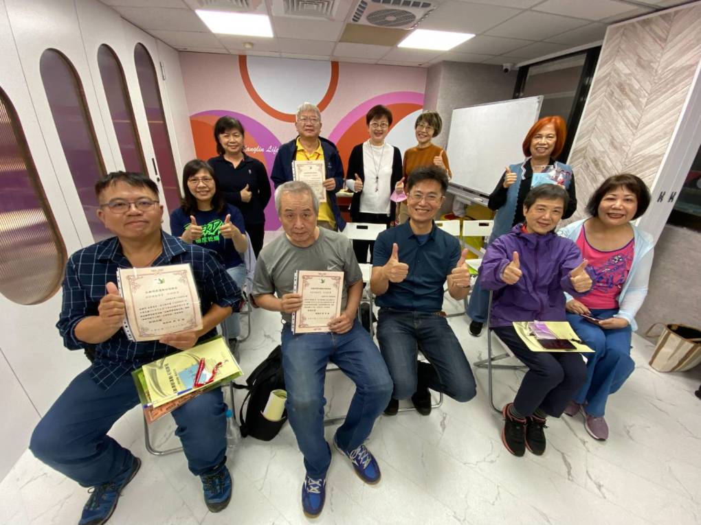 其他的學員中,有3位是擔任居家照顧服務員,也都分享願意協助認識的長輩幫助大家健康,如果能讓更多人習得這樣的運動,那麼相信可以提升企業勞工的健康提升生產力,個人或家庭在健康方面的支出也可以降低,那就更能造福世人,歡迎大家一起來學習!