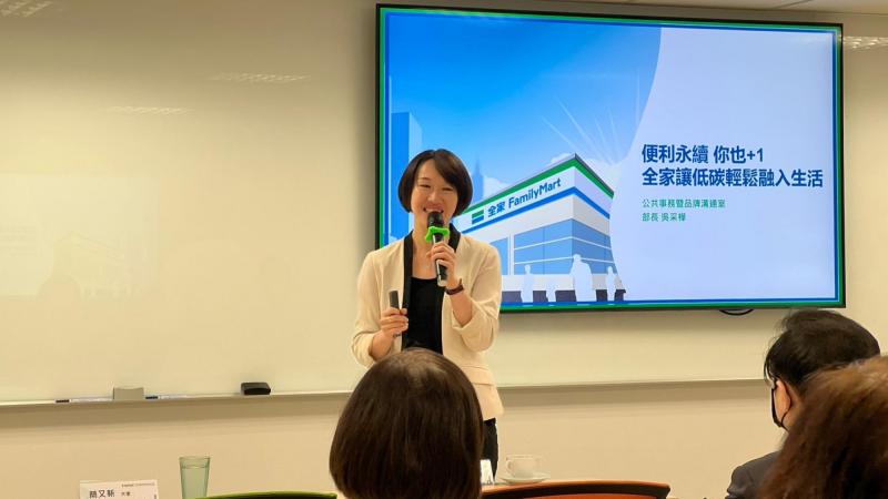 ▲全家便利商店公共事務暨品牌溝通室吳采樺部長,分享服務業的ESG減碳做法(照片係台灣永續能源研究基金會提供)。